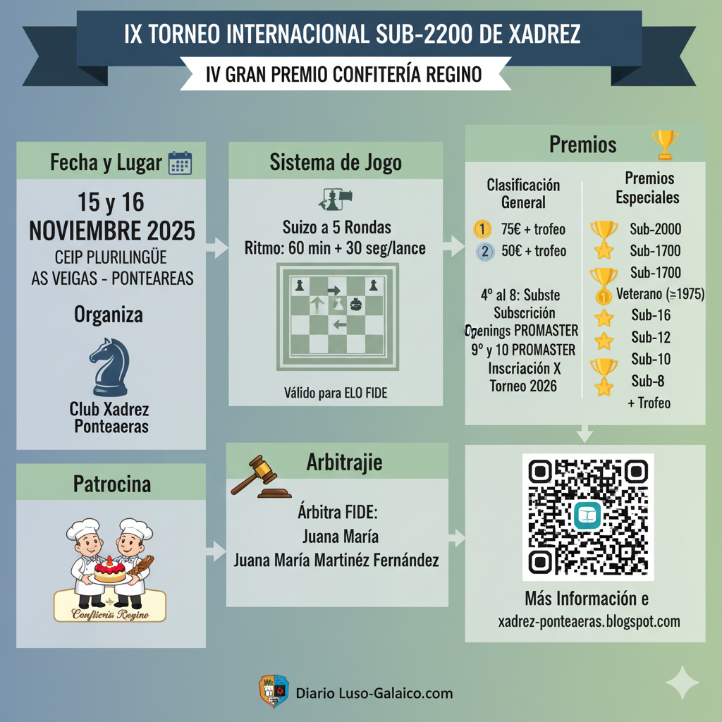 Los interesados en inscribirse u obtener más información pueden hacerlo a través del blog del club: https://xadrez-ponteareas.blogspot.com/