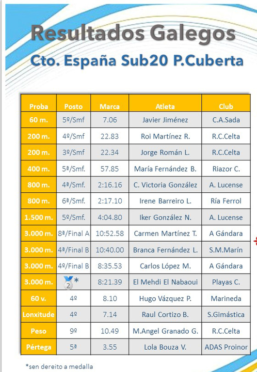 - Javier Jiménez do C.A.Sada, semifinalista nos 60 m. con 7.06