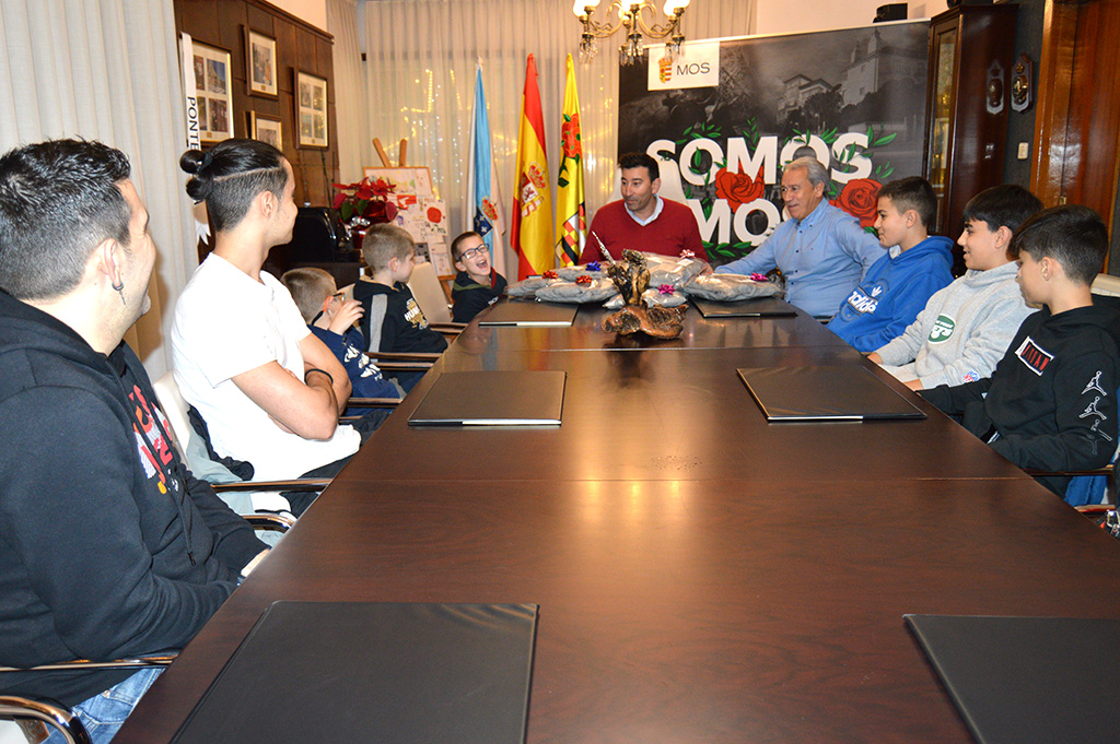 O tenente alcalde mosense, Camilo Augusto, o concelleiro de Deportes, José Areal, e demais membros da Corporación Municipal felicitaron ao clube polo gran papel xogado os pasados 22 de outubro e 19 de novembro no campionato de técnica Copa Xunta de Galicia 2022.