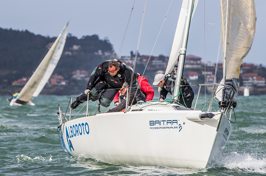 Emocionante tarde de regatas en la bahía de Baiona donde este sábado se disputó la tercera jornada de la Liga de Invierno de J80, que el Monte Real Club de Yates organiza durante los primeros meses del año con el patrocinio de Baitra accesorios navales.