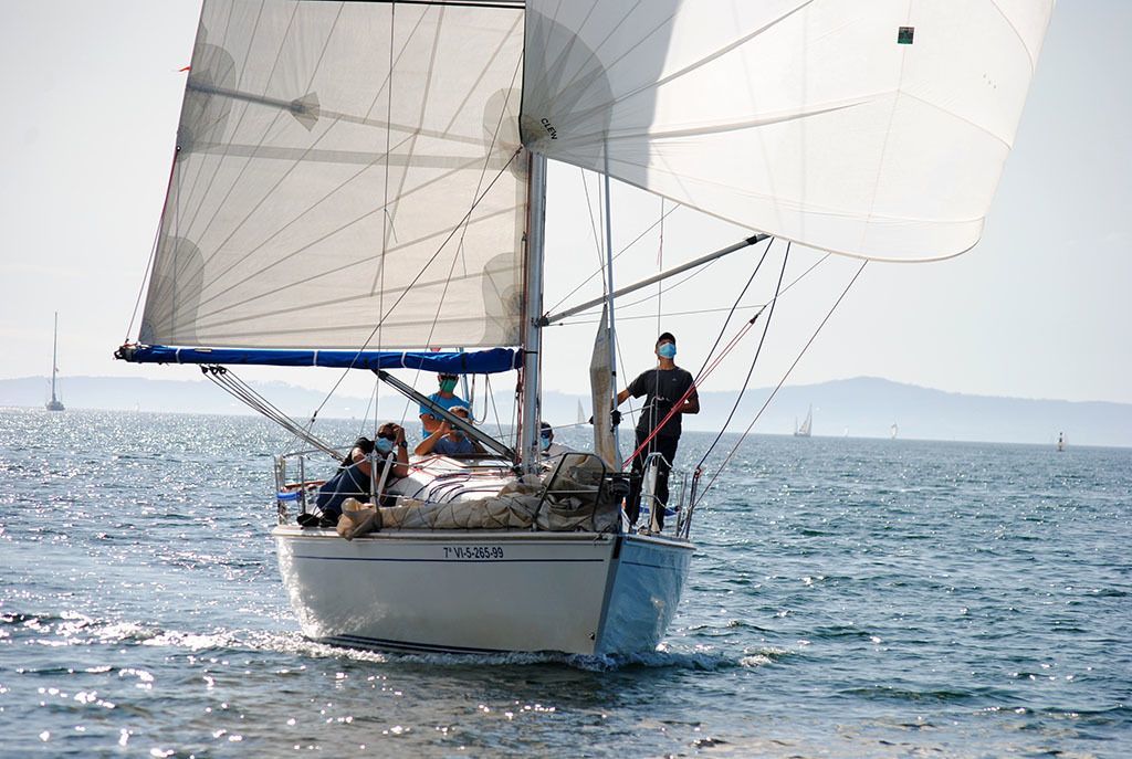 Una hora y media hubo de esperarse para poder dar comienzo a la XXIV Regata Almirante Rodríguez Toubes de cruceros, ya que el viento en la ría de Pontevedra a la hora prevista de salida, las 11.30, era totalmente inexistente, con lo cual el comité de regata optó por desplazar la línea de partida casi tres millas hacia la salida de la ría y a las 13.00 a la altura de la baliza de Morrazán al través de Sanxenxo, conseguía iniciar esta primera etapa con viento del suroeste de 8 nudos y cuya componente se mantuvo ya toda la tarde hasta llegar a Vilagarcía, eso sí, aumentando hasta los 12-14 nudos en muchas ocasiones, de forma que los barcos con rumbos portantes fueron rapidísimos hasta la meta completando 21,8 millas de las 25,5 previstas inicialmente.