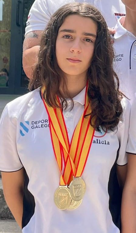 A xove veciña salvaterrense acadou a cima do podio nas tres probas, proclamándose Triple Campioa de España, cun tempo nos 50 metros de 23´17”, a tan só 3 décimas do record europeo e a dúas do español.
