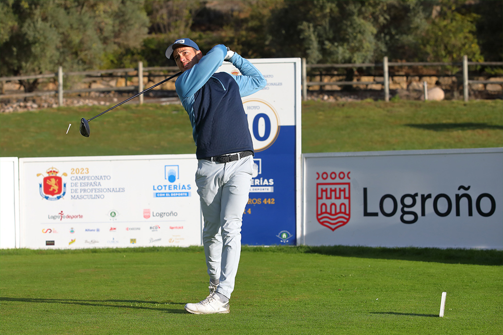 El Campeonato de España de Profesionales Masculino avanza a trancas y barrancas, a trompicones en una carrera contra el reloj para equilibrar su desarrollo desde que el huracanado viento que azotara el Campo de Golf de Logroño durante la tarde del jueves obligara a suspender la primera jornada.
