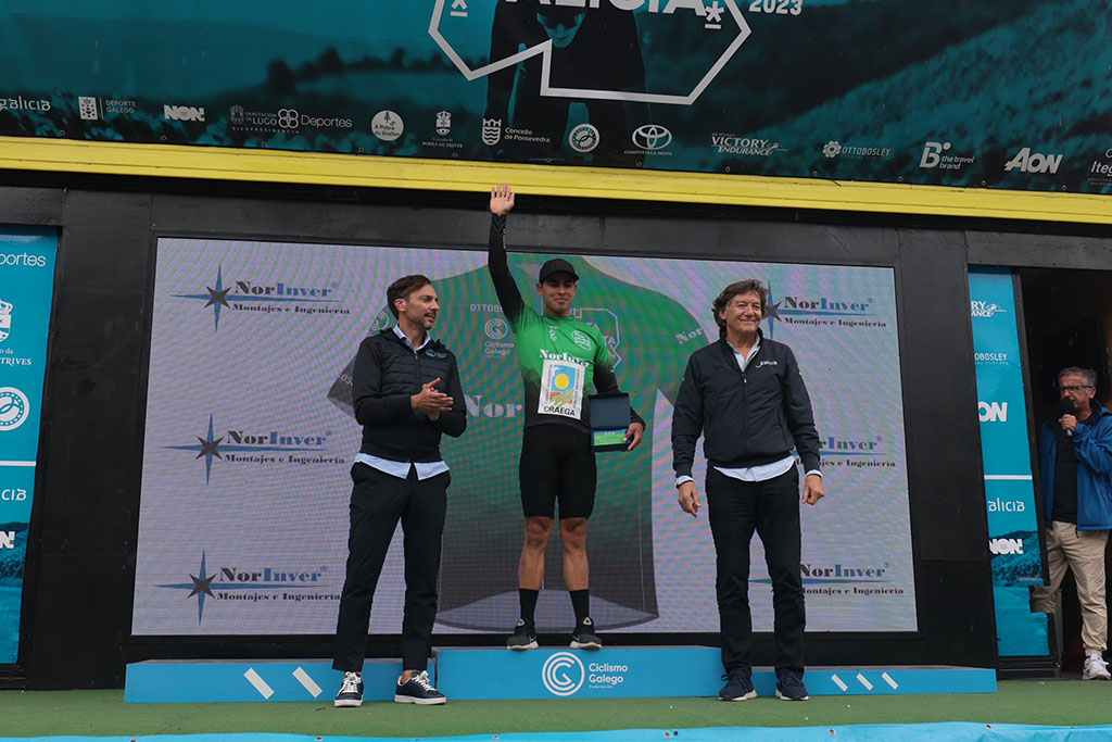 Fernández, segundo na xeral a 2” e vencedor da Montaña, deu un exemplo de deportividade no podio felicitando a Rey. O terceiro chanzo ocupouno o mexicano Édgar Cadena (Telco’m). O líder final tamén recolleu as camisolas de mellor sub23 e primeiro galego, así como o premio da táboa por equipos xunto aos seus compañeiros do Padronés-Cortizo. O maillot das Metas Volantes recibiuno Jason Huertas.