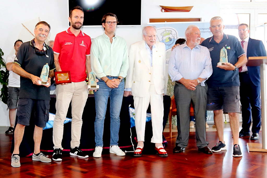 El Gran Trofeo Faro de Corrubedo se lo entregó Ramiro Carregal a Víctor Carrión, armador y patrón del Bon III, al haberse adjudicado la general de la regata, y que defendía la grímpola de Portosín.
