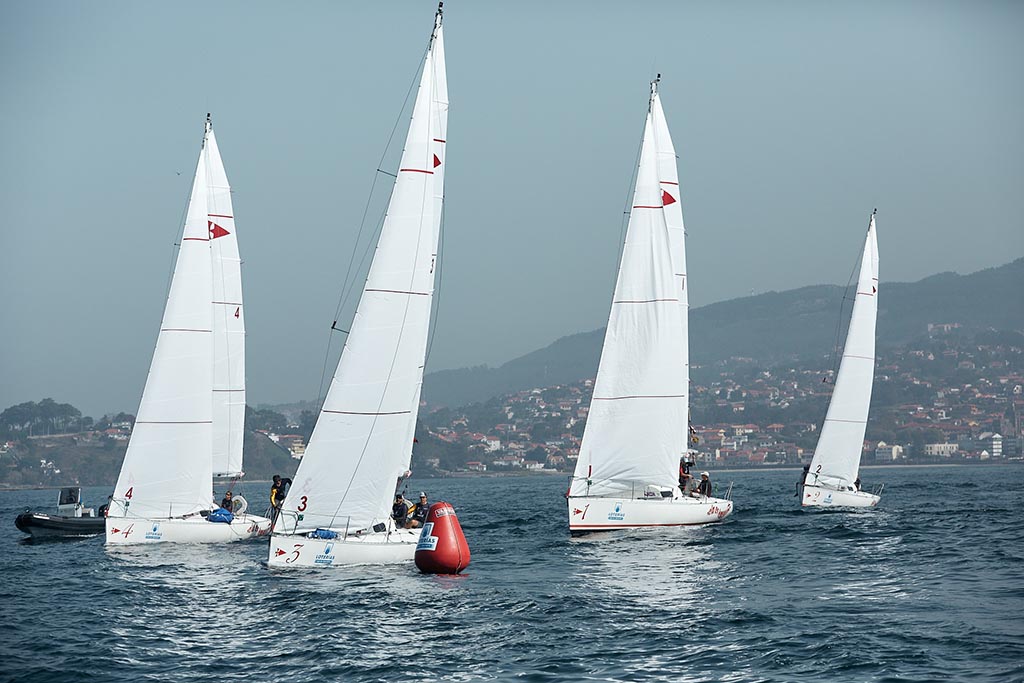 El día comenzó en tierra con el reparto de lycras personalizadas a las tripulaciones y el sorteo de los grupos de competición. Acto seguido los primeros en competir pudieron subir ya a los monotipo Figaro mientras que el resto de participantes embarcaban en un catamarán desde el que han podido seguir las pruebas a la espera de su turno.
