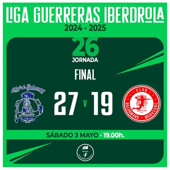 El Conservas Orbe Zendal Bm Porriño despidió la fase regular de la Liga Guerreras Iberdrola con un triunfo convincente en casa ante el Bm Morvedre (27-19), en un encuentro disputado este sábado 3 de mayo en el Pabellón Municipal de O Porriño. Con un planteamiento sólido en defensa y una mejor efectividad en ataque, las locales dominaron el duelo de principio a fin, mostrando la solidez que las ha consolidado en la zona alta de la tabla. De esta forma, aseguran la 4ª plaza.
