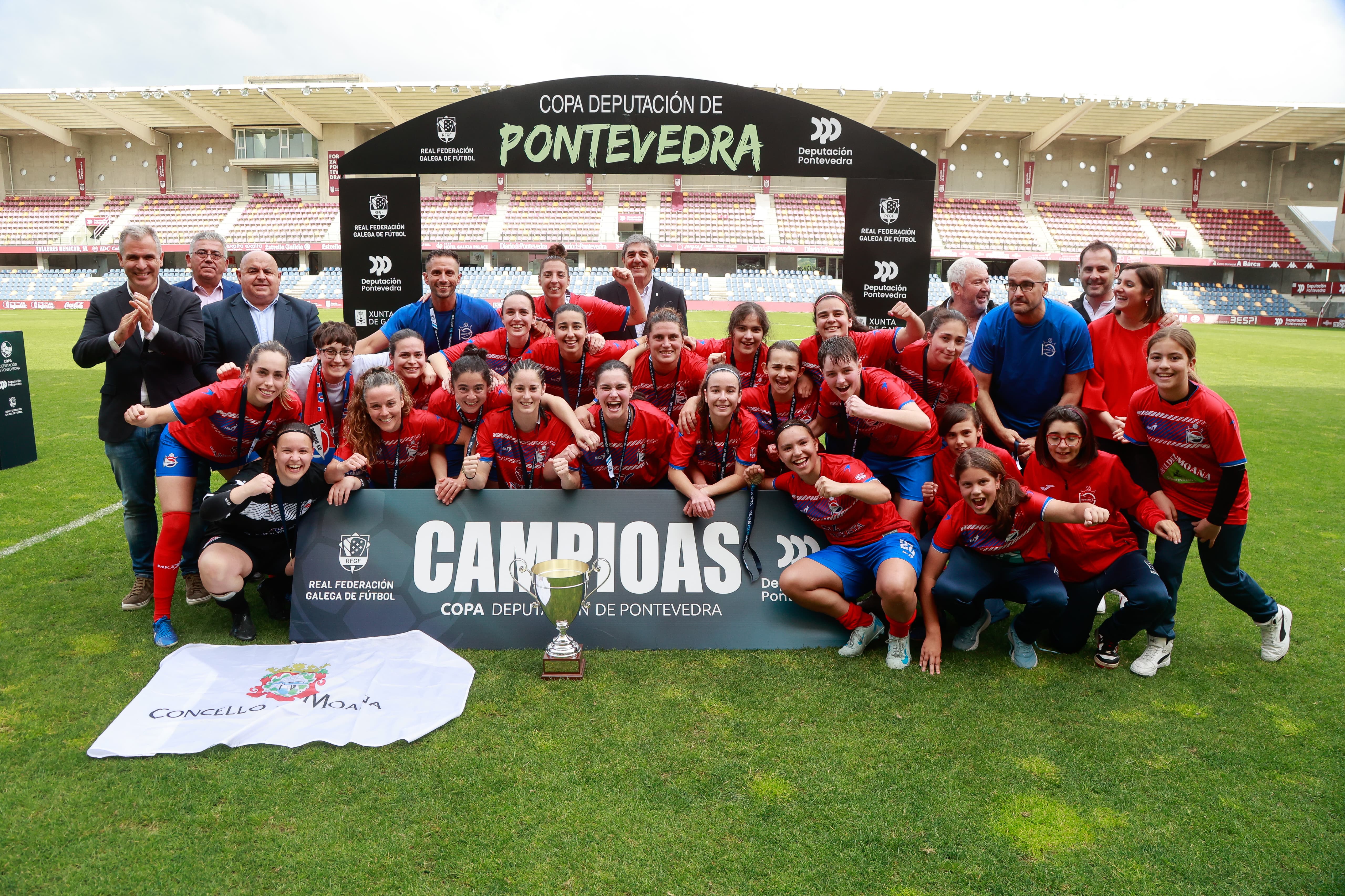O Estadio de Pasarón foi o escenario da entrega dos trofeos da Copa Deputación de fútbol, nun acto que puxo de manifesto o apoio da Deputación ao deporte base da provincia. A vicepresidenta do organismo provincial, Luisa Sánchez, entregou esta mañá de domingo o título de campión da categoría masculina ao CD Cultural Areas, flamantes vencedores da competición. Pola tarde, o vicepresidente Rafa Domínguez foi o encargado de facer o propio co Domaio FC, que se alzou coa Copa Deputación feminina.