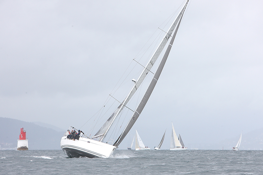 Con el viento en el eje de la previsión meteorológica, es decir, del suroeste-oeste, y con franjas de intensidad entre los 12 y los 17 nudos, el Comité de la Regata, dirigido por Yago Crespo, dio salida puntual a las 11 de la mañana a los ORC, a continuación a los Solitarios y A Dos y, por último, a los de Concentración Náutica, circunnavegando los primeros las Islas Cíes en sentido Norte a Sur, y el tercer grupo trazando un recorrido costero por el interior de la Ría de Vigo.