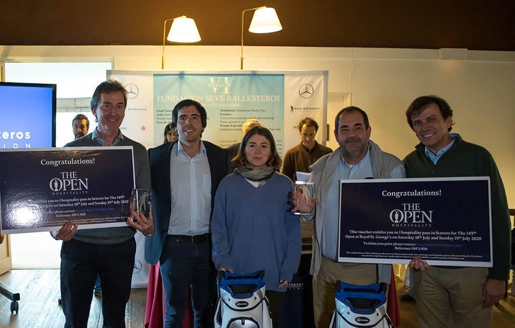 Casi 2.000 jugadores han tomado parte en el VI Desafío Fundación Seve Ballesteros y la final se disputaba entre las 23 parejas clasificadas. En esta edición, la pésima meteorología impidió una jornada normal y el juego tuvo que ser suspendido cuando sólo se llevaban disputados unos pocos hoyos. Al final, por sorteo, la ‘victoria’ recayó en la pareja formada por Francisco Javier García Cutrín y Manuel López Silva, del Real Aero Club de Vigo, y como fantástico premio están invitados a disfrutar las jornadas del 18 y 19 de julio del Open Championship de 2020 por cortesía de The R&A, e invitados en los traslados y el alojamiento por La Fundación.