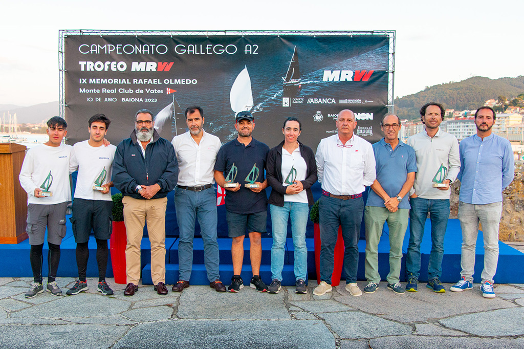 Además de los títulos de Campeones Gallegos de A Dos, en el Monte Real Club de Yates se entregó este sábado el copón del IX Memorial Rafael Olmedo, con el que el club baionés recuerda al que fuera su presidente durante más de 40 años. Lo entregó el hijo de Don Rafael, Mauro Olmedo, y se lo llevaron los mejores equipos de ORC y J80: el Yess Too de Rui Ramada y Pedro Serodio y el Alboroto de Javier Aguado y Juan Lago.