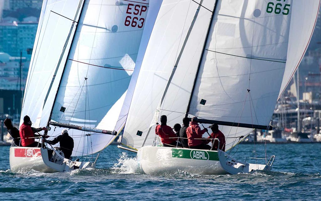 Sin embargo en la primera prueba, de las dos que se celebraron en la ría viguesa con vientos suaves de 6 a 10 nudos de componentes oeste y suroeste, los del Náutico de Vigo no lograban vencer… dado que la victoria en esta manga de apertura era para el patrón ourensano Jorge Pérez Canal con Abril Rojo, un patrón muy experimentado, que atesora una gran calidad, y que fue de los primeros campeones españoles de la clase láser (hoy ILCA).