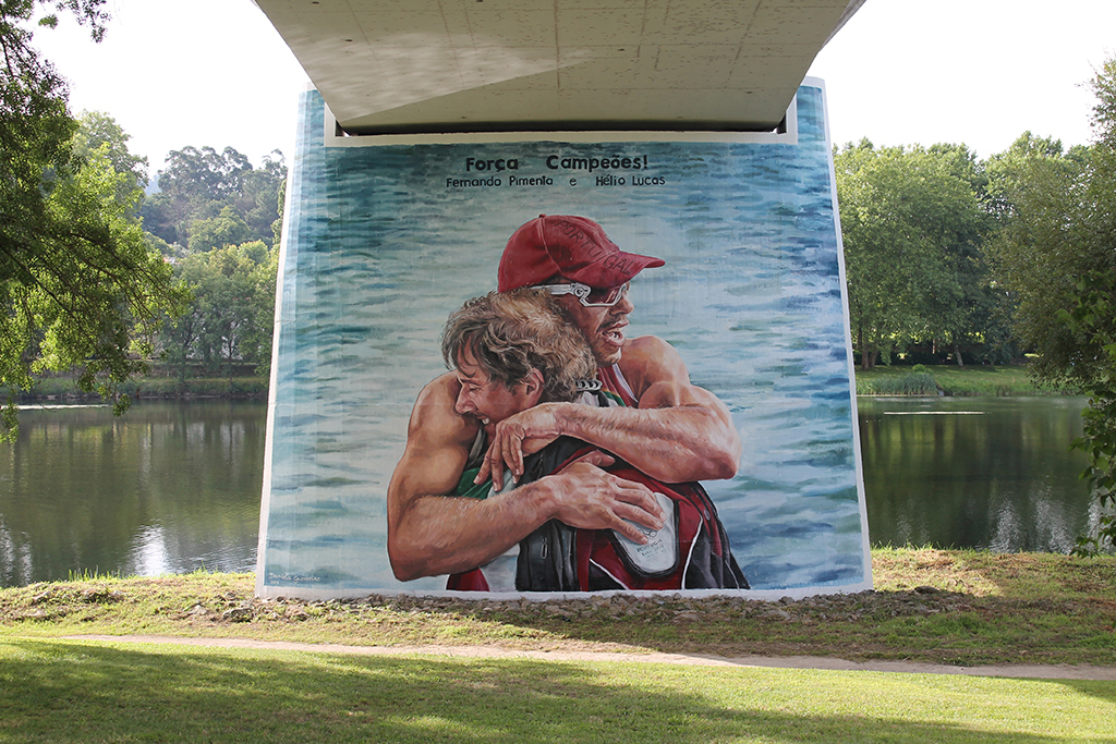 O mural que homenageia estes dois limianos campeões, apaixonados pela canoagem e pelas águas do Rio Lima, foi pintado pela artista Daniela Guerreiro e situa-se num dos pilares da Ponte Nossa Senhora da Guia, junto ao Centro Náutico Fernando Pimenta.
