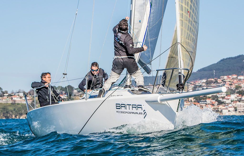 La aplicación de un descarte le permitió eliminar su peor resultado (un tercero) y con unos parciales de cuatro primeros puestos y un segundo en las pruebas celebradas hasta el momento se mantiene en cabeza con seis puntos. Al equipo de Gándara, en el que siguen conformando el núcleo duro su hijo Jaime y Diego Fernández, se sumó este sábado otro gran regatista como es Iago Carrera.