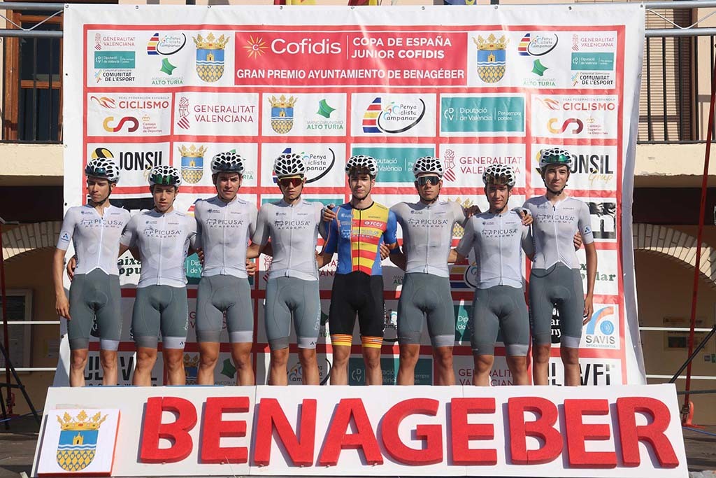 De principio a fin de la Copa de España Júnior Cofidis la clasificación por equipos la ha liderado Picusa Academy. La formación gallega, en su primer año en la categoría juvenil, llegó a la última carrera del calendario como virtual ganadora de la general por escuadras y certificó el título con una de sus mejores actuaciones de la temporada. En el Gran Premio Ayuntamiento de Benagéber-Alto Turia celebrado este miércoles en la provincia de Valencia logró la segunda posición en la tabla por conjuntos y pisó el podio individual con su última incorporación.