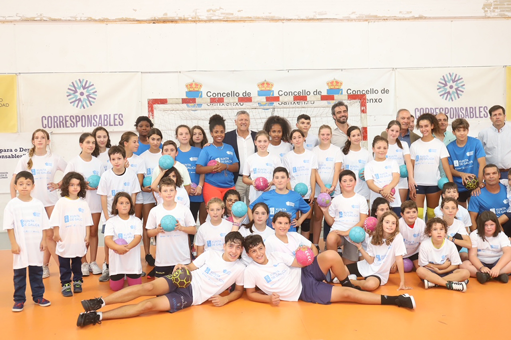 El vicepresidente primero y conselleiro de Presidencia, Justicia y Deportes, Diego Calvo, acompañó hoy junto con el delegado territorial de la Xunta en Pontevedra, Agustín Reguera, los 40 chicos y chicas menores de 16 años que disfrutaron del balonmano en el pabellón de Vilalonga de Sanxenxo en una actividad organizada por la Federación Galega de Balonmano.