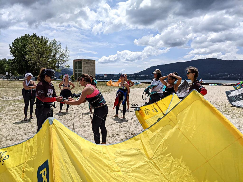 “Ha sido un gran día y las chicas han venido con mucho ánimo y muchas ganas de mejorar”, comenzaba explicando Lambrey. “Uno de los puntos que creí que era más importante para empezar la clase fue la parte de seguridad para aprender a cerciorarnos de que nuestra práctica es segura, haciendo ejercicios de lanzamiento de cometa en tierra y practicando el auto rescate. Después aprovechamos para hacer ejercicios de control avanzado de la cometa, y cuando subió el viento ya nos fuimos al agua para poder poner todo en práctica”.