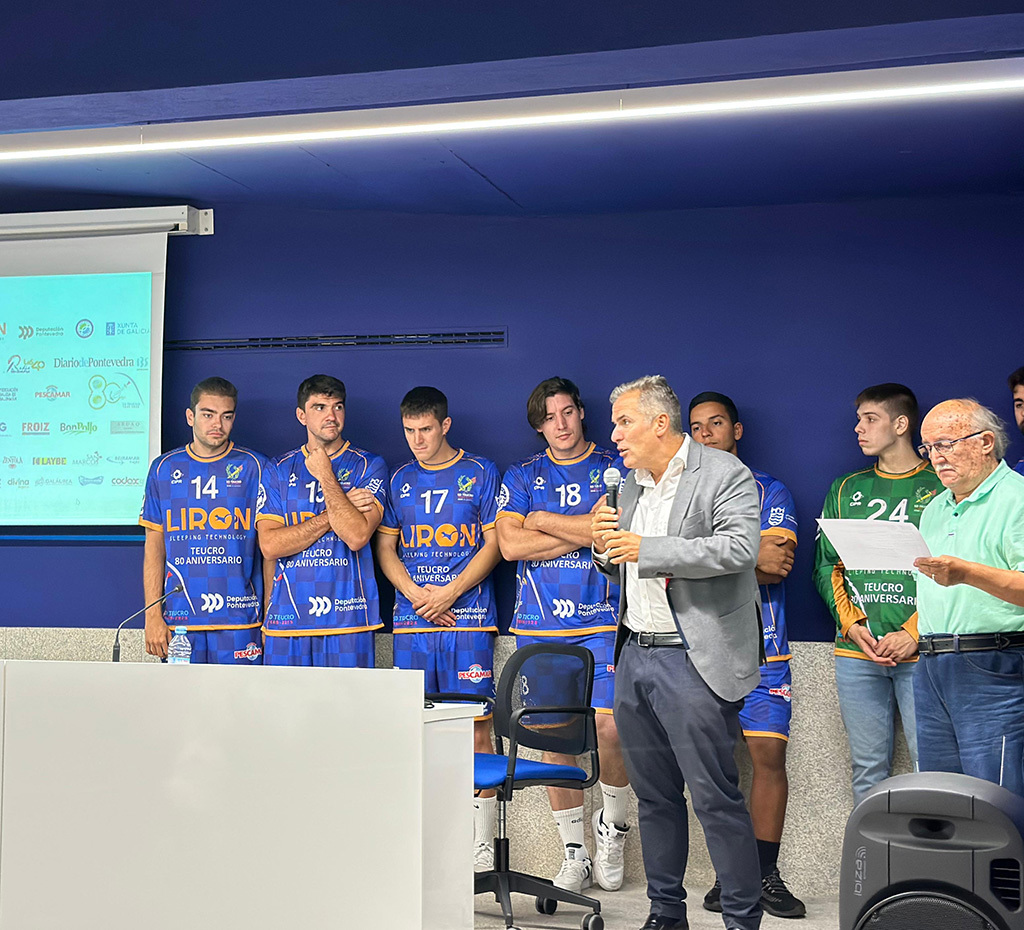 El vicepresidente de la Diputación de Pontevedra, Rafa Domínguez, se unió hoy a la familia del Club Deportivo Teucro en la presentación oficial del equipo de Primera División Nacional Masculina para la temporada 2023/2024. Un acto cargado de ilusión en el que se dio a conocer la plantilla y el cuerpo técnico que lucharán por mantener al equipo en la máxima categoría del balonmano español.