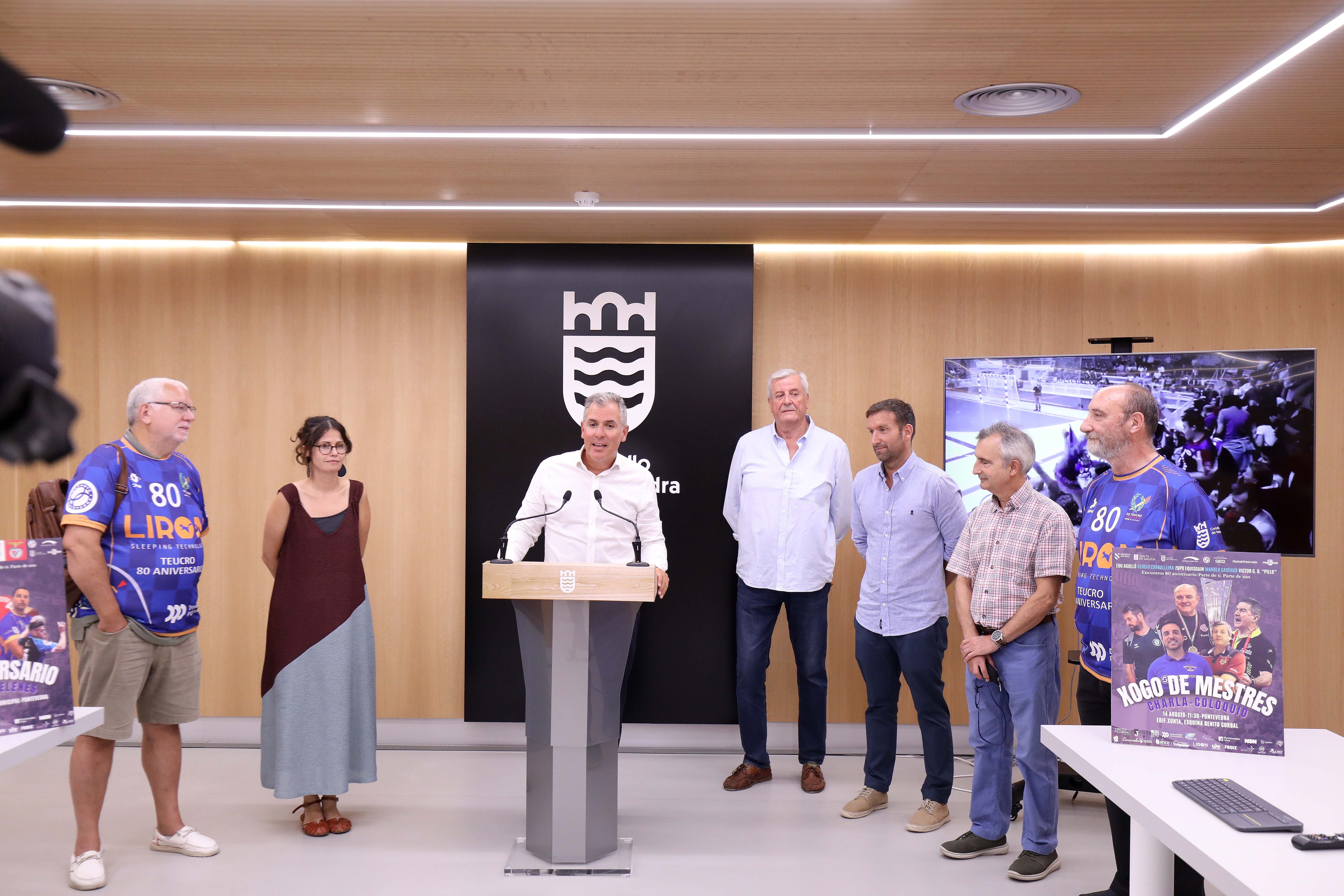 O vicepresidente da Deputación de Pontevedra, Rafa Domínguez, participou este martes na Casa do Concello de Pontevedra na presentación dos actos cos que a SD Teucro celebrará o próximo 14 de agosto o seu 80 aniversario. “Encontros 80 aniversario. Parte de ti. Parte de nós” consistirá nunha charla-coloquio con figuras senlleiras do balonmán nacional e un torneo no Pavillón Municipal que medirá o Teucro coa Selección Galega All Stars de Primeira Nacional, e tamén enfrontará o BM Granollers contra o Sport Lisboa e Benfica.