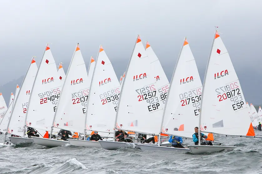 En Portosín, sede del Campeonato de España de ILCA 4, se respiraba alivio y tranquilidad, al completarse una manga más en ambos grupos Amarillo y Azul, en una jornada difícil por las condiciones de mar y viento, en la que se llegó a registrar algún pico de 30 nudos (unos 60 km/h) con una media de viento de entre 15-18.