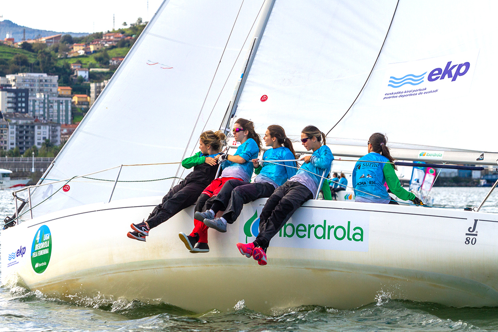 Las aguas del Abra se han vestido de gala para acoger la gran final de la Liga Iberdrola de Vela Femenina y la V edición de la EKP Women's Cup. Quince tripulaciones de toda España se han dado cita en Getxo para competir en la clase J80 y demostrar su destreza en este deporte.