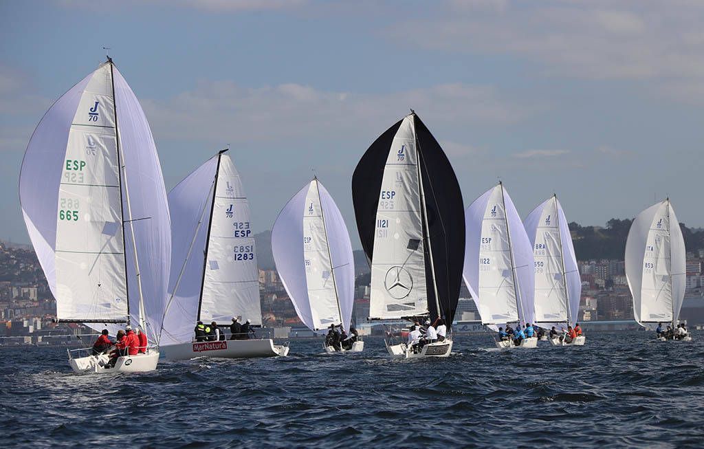 Había mucha expectación en presenciar el debú del J70 de Luis Martínez Doreste… la razón comprobar si los J70 catalanes estaban en la onda de los que compiten en aguas gallegas. El “Mercedes Benz” venía con la vitola de campeón de las Barcelona Winter Series… y comenzaba logrando un 7º puesto, que repetía en la segunda manga. A la tercera iba la vencida, pues lograba un primero… y en la última manga se situaba sexto: resumen un espléndido tercer puesto. En el barco canario en totalidad, nada menos que Ricardo Terrades, Nete Armas y el medalla de oro Domingo Manrique.