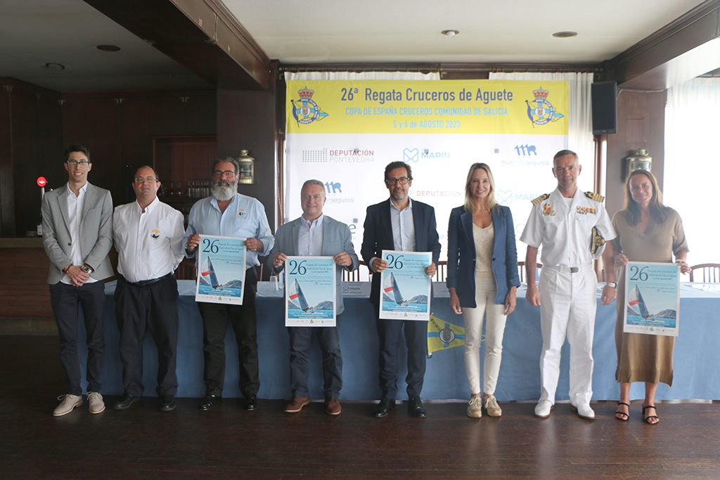 En las instalaciones del Real Club de Mar de Aguete en Seixo-Marín, se presentó este mediodía su evento deportivo por excelencia, la Regata Cruceros de Aguete que cumple este año sus bodas de plata con la 26ª Edición.