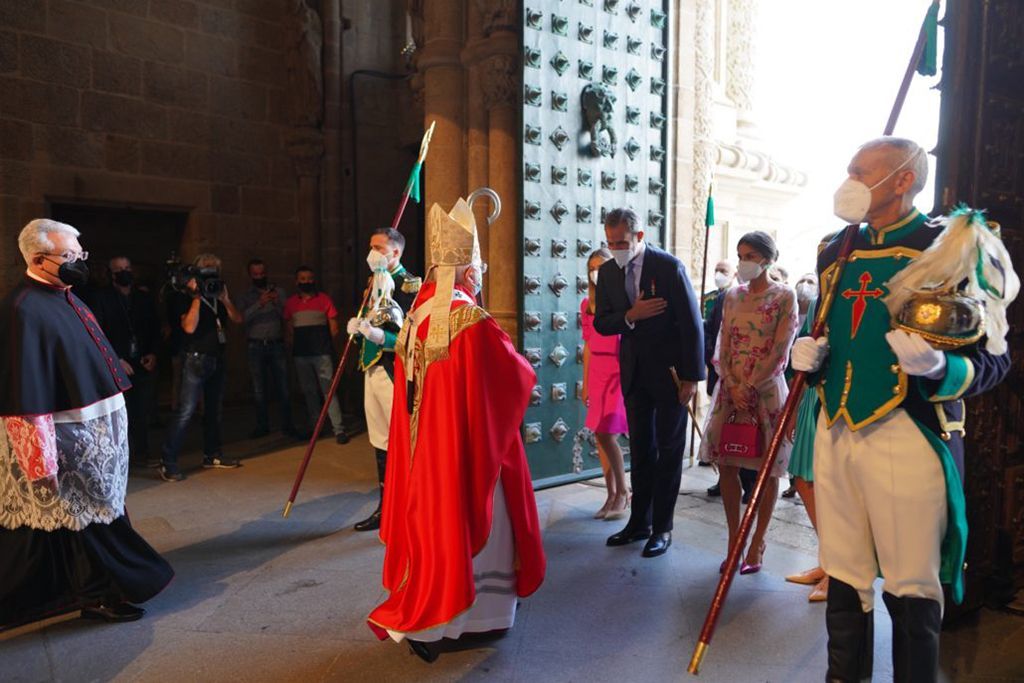 El arzobispo de Santiago, monseñor Julián Barrio, presidió hoy, solemnidad del Apóstol Santiago, la Santa Misa en honor del Patrono de España, una ceremonia en la que el Rey Felipe VI presentó la Ofrenda Nacional en este Año Santo Compostelano. En su homilía, monseñor Barrio agradeció la presencia de Sus Majestades, de la Princesa de Asturias, doña Leonor, y de la Infanta Sofía, y aseguró que con “el Apóstol Santiago hacemos memoria de la necesidad de identificarnos con la historia y persona de Cristo, en la búsqueda paciente de la verdad para promover la cultura del cuidado común que nos posibilita comprender la unidad y la historia de los pueblos de España, vertebrada con lo común de todos y lo específico de cada uno”. El arzobispo compostelano acogió la Ofrenda de Felipe VI “encomendando á intercesión do Apóstolo Santiago a todos os pobos de España, para que manteñamos unha convivencia fraterna non esquecendo as nosas raíces. Que Deus, co teu patrocinio, Santo Apóstolo, bendiga ás súas Maxestades e a toda a Familia Real, sempre sensibles a toda realidade que afecta ao noso pobo”.