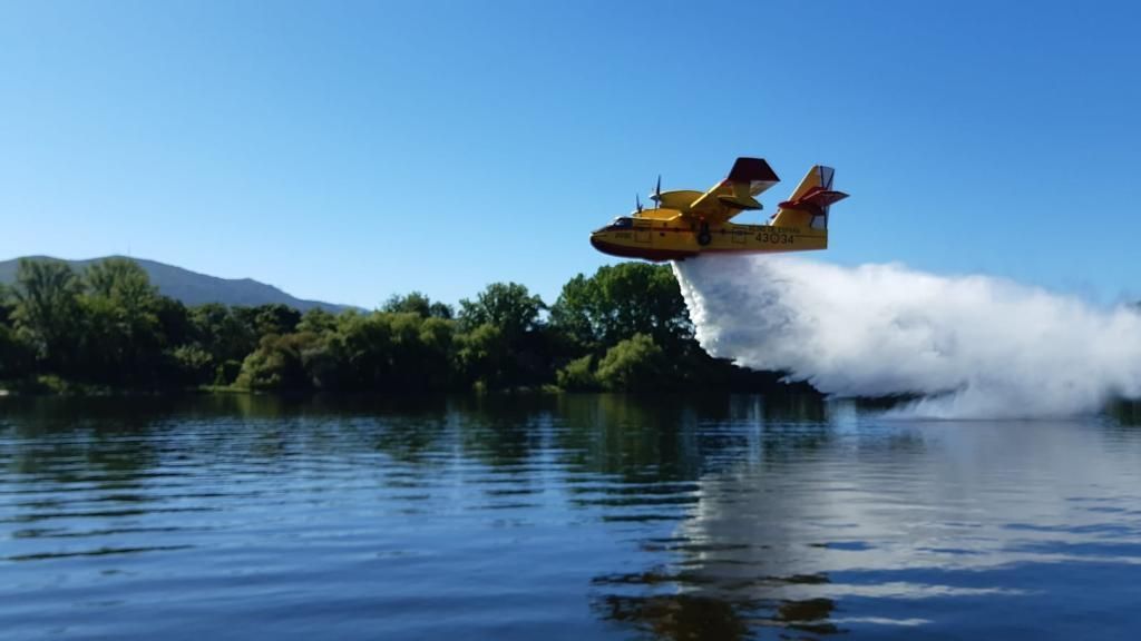 El hidroavión contraincendios actuó en espacios seguros creados para la carga de agua en el Miño