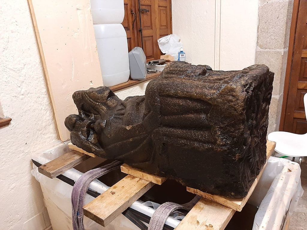 La figura, encontrada por un particular que estaba practicando la pesca deportiva a la altura del barrio de Conxo, fue trasladada al Museo de las Peregrinaciones y de Santiago donde, en un primero paso, fue introducida en una cubierta de agua con el fin de mantener los niveles de humedad, una técnica habitual de conservación preventiva que se suele aplicar antes de cualquier toma de decisiones sobre los siguientes pasos a dar para la consolidación y puesta en valor de la pieza.