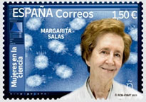 La investigadora Margarita Salas en un sello dedicado