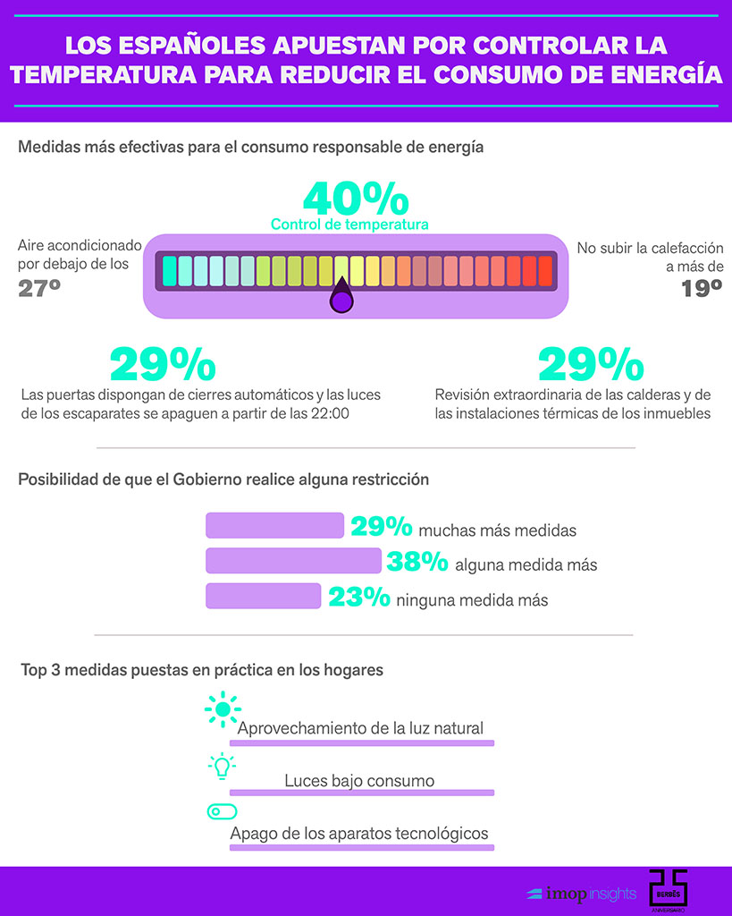 En cuanto a la posibilidad de que el Gobierno realice alguna restricción en relación al consumo energético, el 28,9% estaría de acuerdo en que tome muchas más medidas, el 37,7% defendería alguna medida más y el 22,8% cree que no se debería hacer nada más.