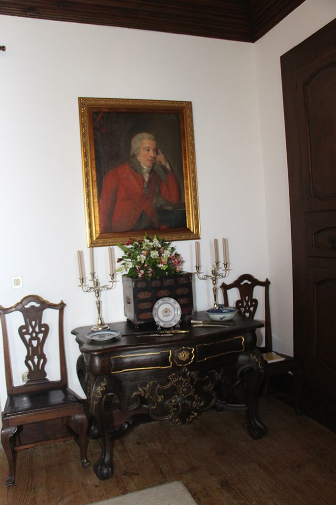 “Estamos en una casa de referencia, en una casa-museo. Y preside la entrada un cuadro del Conde da Barca. En él se representa al estadista y diplomático ataviado con la chaqueta roja correspondiente a los diplomáticos portugueses. El cuadro es de la autoría de Domenico Pelegrini, un pintor italiano, nacido en Venecia”.