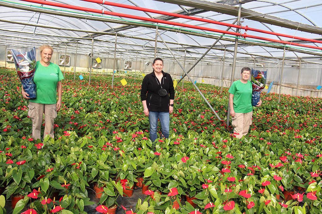 San Campio le compra el diminuto plantel de Anthorium a Holanda, que los produce por fecundación ‘in vitro’. Las plantas llegan a Galicia y se ‘recrían’ en Viveros San Campio durante un año. Continuamente están entrando planteles y saliendo los ejemplares cultivados en macetas de 14 o 17 centímetros de diámetro con portes de hasta 40 cm de alto y ancho, que van ininterrumpidamente cumpliendo este ciclo. Cada año son 200.000 las plantas cultivadas que se venden en Galicia, España y Portugal. Tan solo hay dos viveros más en España que hagan lo mismo con el Anthorium.