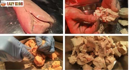 final de sus vidas, cuando se procede a su cebo a base de maíz cocido, utilizando una sonda que les mete la comida durante unos minutos dos o tres veces al día.