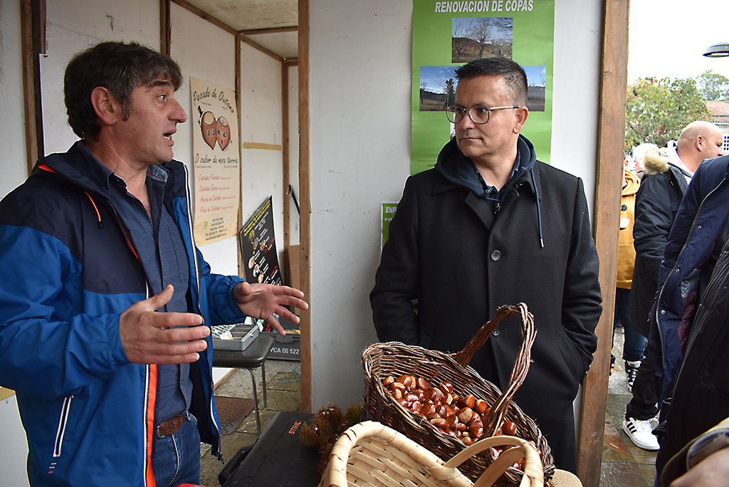 El conselleiro del Medio Rural, José González, acompañado por el director general de Planificación y Ordenación Forestal, José Luis Chan, y el delegado territorial de la Xunta en Ourense, Gabriel Alén, asistió esta mañana a la XXVII Fiesta de la castaña y de la seta de Riós. Allí reafirmó su compromiso con el sector de la castaña, para el cual la Consellería de Medio Rural invertirá el año que viene 4,8 millones de euros.