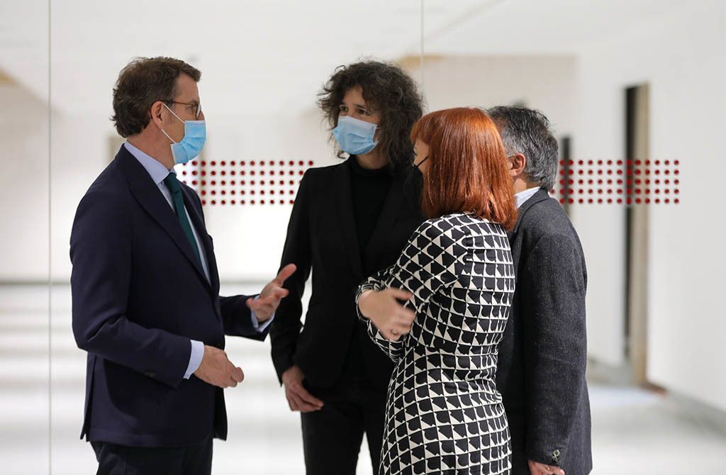 A obra de adecuación da ala sur do conxunto de San Domingos de Bonaval para a ampliación do Museo do Pobo Galego, dirixida polo Consorcio de Santiago, remataba despois de algo máis dun ano de intervención. O alcalde de Santiago e presidente do Consorcio da cidade, Xosé A. Sánchez Bugallo; o presidente da Xunta de Galicia, Alberto Núñez Feijóo; e o delegado do Goberno en Galicia, Javier Losada; visitaron esta tarde o edificio para coñecer o resultado das obras. No acto estiveron tamén o conselleiro de Cultura, Educación e Universidade e vicepresidente segundo do Consello de Administración do Consorcio de Santiago, Román Rodríguez; o secretario xeral de Cultura, Anxo Lorenzo; a concelleira responsable de Urbanismo, Vivenda, Cidade Histórica, Acción Cultural e Igualdade do Concello de Santiago, Mercedes Rosón; o presidente do Padroado do Museo do Pobo Galego, Xusto Beramendi; xunto á xerente do Consorcio de Santiago, Belén Hernández.