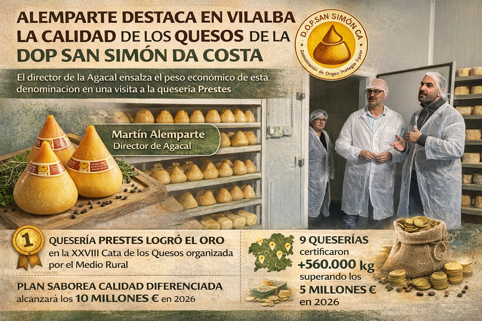 Durante la visita, Alemparte recordó que el queso elaborado por Prestes fue el ganador del oro en la categoría de la DOP San Simón da Costa en la XXVIII Cata de los Quesos de 2025, organizada por la Consellería do Medio Rural. Asimismo, señaló la relevancia de esta figura de calidad, una de las cuatro denominaciones de origen reconocidas en Galicia para la elaboración de queso.