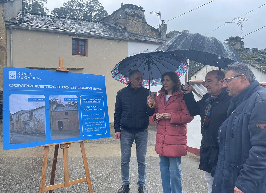 Acompañada do alcalde do municipio, Manuel Otero, a responsable autonómica explicou que o pasado mes de xaneiro o Instituto de Estudos do Territorio (IET) convocou por terceiro ano consecutivo dúas ordes de axudas para a corrección de impactos paisaxísticos: unha dirixida a concellos de menos de 20.000 habitantes e a outra, a propietarios particulares.