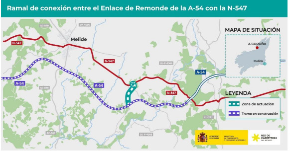 El Ministerio de Transportes y Movilidad Sostenible ha dado luz verde definitiva al proyecto de construcción de un nuevo ramal que conectará la autovía A-54 (Santiago-Lugo) con la carretera N-547 a través del futuro enlace de Remonde, en la provincia de Lugo. El presupuesto base de licitación estimado asciende a 6,74 millones de euros (IVA incluido), y el anuncio se publicará próximamente en el Boletín Oficial del Estado (BOE).