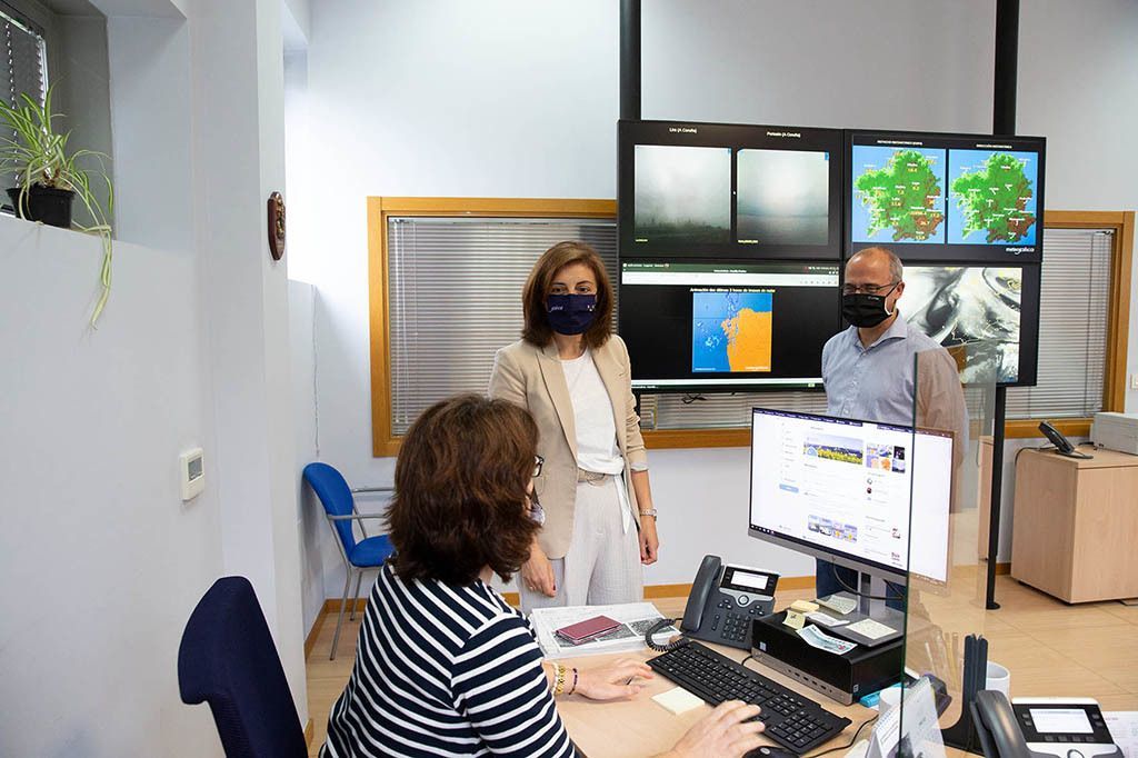 Durante a visita, Ángeles Vázquez tamén salientou que coñecemos esta situación grazas aos datos obtidos a través da rede de observación meteorolóxica e oceanográfica, en constante renovación e reforzo, que se completa coas cámaras web que permiten prever os adversos meteorolóxicos, así como realizar un seguimento das variables atmosféricas e oceanográficas, datos fundamentais para estudar e avaliar os impactos do cambio climático sobre a poboación, o territorio e os recursos naturais.