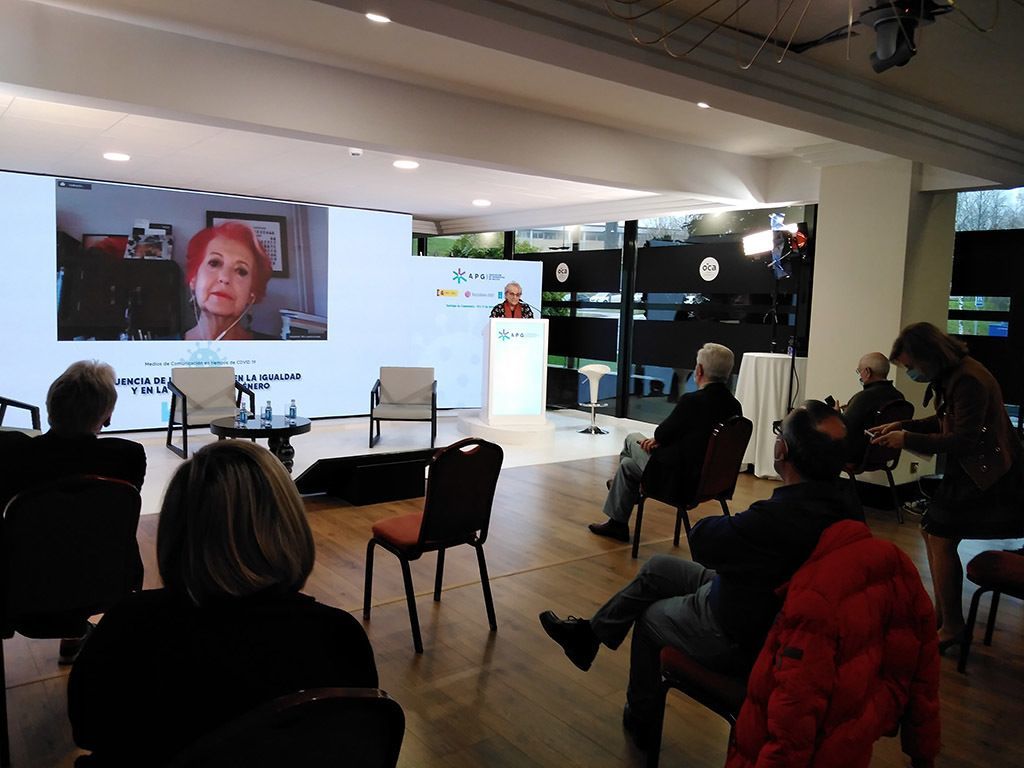 Pola súa banda, Rosa María Calaf, xornalista e excorrespondente internacional, empezou a súa conferencia afirmando que “a pandemia trastocou todo, facendo viral a vulnerabilidade, de xeito que a pandemia enferma o corpo e os dereitos”, un contexto no que se evidencia o carácter esencial do xornalismo “para contribuir á igualdade e derrubar estereotipos pola súa capacidade de crear modelos sociais, estereotipos que obedecen a un modelo social androcéntrico, que ofrece unha imaxe da muller como persoa de segunda categoría”.