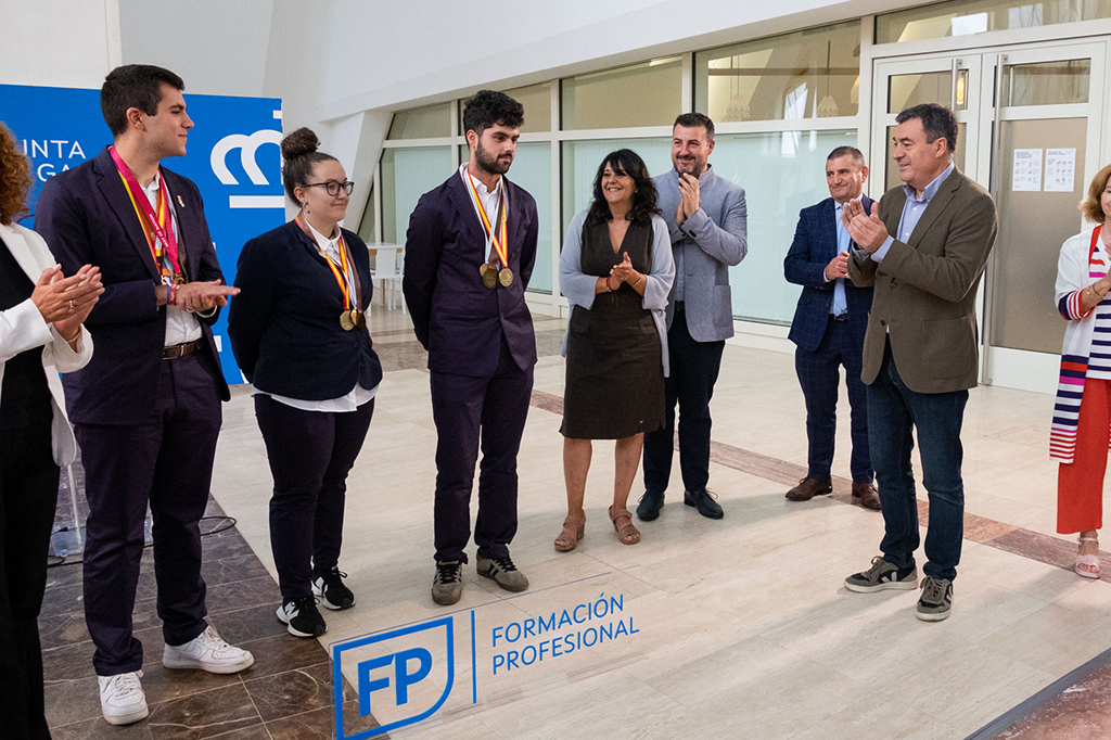El conselleiro de Cultura, Educación, FP y Universidades, Román Rodríguez, destacó hoy el triunfo del alumnado gallego en el campeonato europeo EuroSkills como ejemplo de la potencialidad de la FP en nuestra Comunidad. El titular del departamento educativo de la Xunta recibió en la Cidade da Cultura a Mateo Rubal Fanego (IES María Sarmiento, Viveiro), María Emilia Piedra Iglesias (CIFP Paseo das Pontes, A Coruña) y Sergio Martínez Calvar (*CIFP Manuel Antonio, Vigo), los tres chicos que participaron en esta cita continental del 5 a 9 de septiembre en Gansk (Polonia). También asistieron al acto los docentes que los acompañaron en esta experiencia.