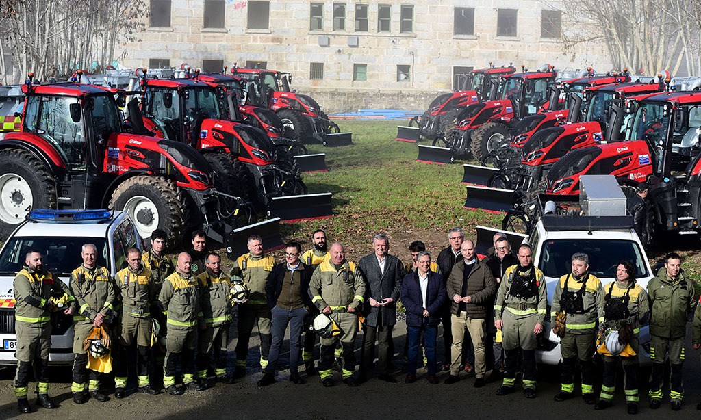 Durante la visita de hoy, la Xunta también hizo entrega al personal de lucha contra el fuego del servicio público gallego de 14 equipos multifunción denominados batracios. Unos vehículos que, con una inversión de más de 4,8 M€, constituyen toda una innovación al no existir nada parecido en el entorno. Están formados por tractor, cisterna, trituradora y polidozer, por lo que son capaces de circular con seguridad nos montes y mejorar la eficacia de los trabajos preventivos, así como optimizar la labor de preparación y mantenimiento de pistas forestales, líneas de defensa contra incendios y cortafuegos y el mantenimiento de puntos de agua.