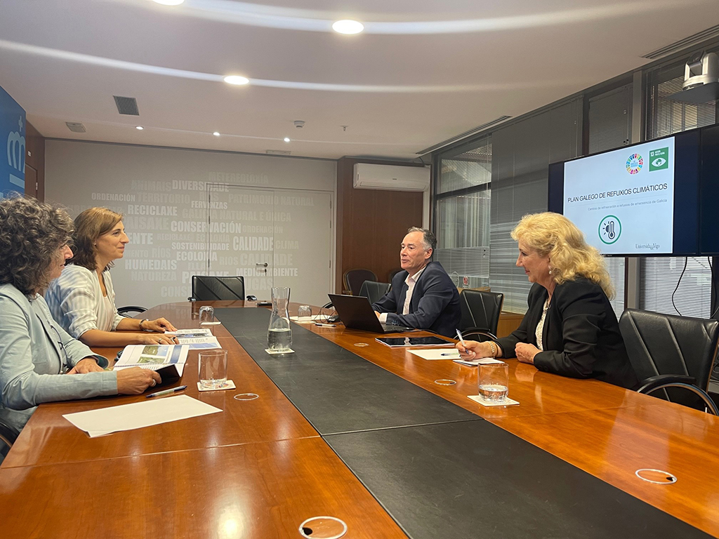 La vicepresidenta segunda y conselleira de Medio Ambiente, Territorio e Vivenda, Ángeles Vázquez, mantuvo recientemente una reunión con el vicerrector de Planificación y Sostenibilidad y con la directora de la Oficina de Medio Ambiente de la Universidad de Vigo, José Luis Míguez y Delfina Couce, respectivamente, en la que estudiaron la elaboración de un plan de refugios climáticos en Galicia.