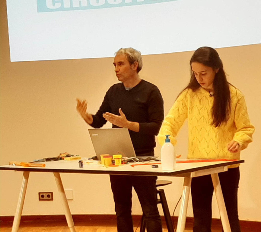 Esta edición, que ten como lema “A innovación do futuro”, está a amosar aos máis novos cara a onde camiña a innovación. Ao longo da mañá desenvolvéronse varios talleres para alumnos de Primaria e Secundaria. Os de Primaria participaron na proposta “Iluminando o mundo”, unha serie de experiencias vencelladas coa electricidade, grazas ao material tecnolóxico que recibiron nos seus centros educativos. Así, puideron realizar circuítos eléctricos con elementos tan sinxelos como plastilina, pilas e leds. Afondaron no mundo da electricidade e coñeceron todo o que nos aporta na vida cotiá.