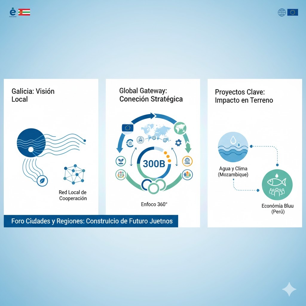 Como moderador de uno de los debates principales, Gamallo subrayó la importancia de la contribución de los gobiernos locales y regionales a la estrategia Global Gateway, el marco que guía las relaciones de la UE con los países del Sur Global. El director general, en representación del CdR y de la Xunta de Galicia, recordó que el éxito de esta estrategia “depende de que las inversiones se adapten a las realidades locales”. “Esto solo es posible con la participación de las autoridades locales y regionales —añadió—, que conocen las necesidades reales del territorio y pueden garantizar la sostenibilidad a largo plazo de los proyectos”.