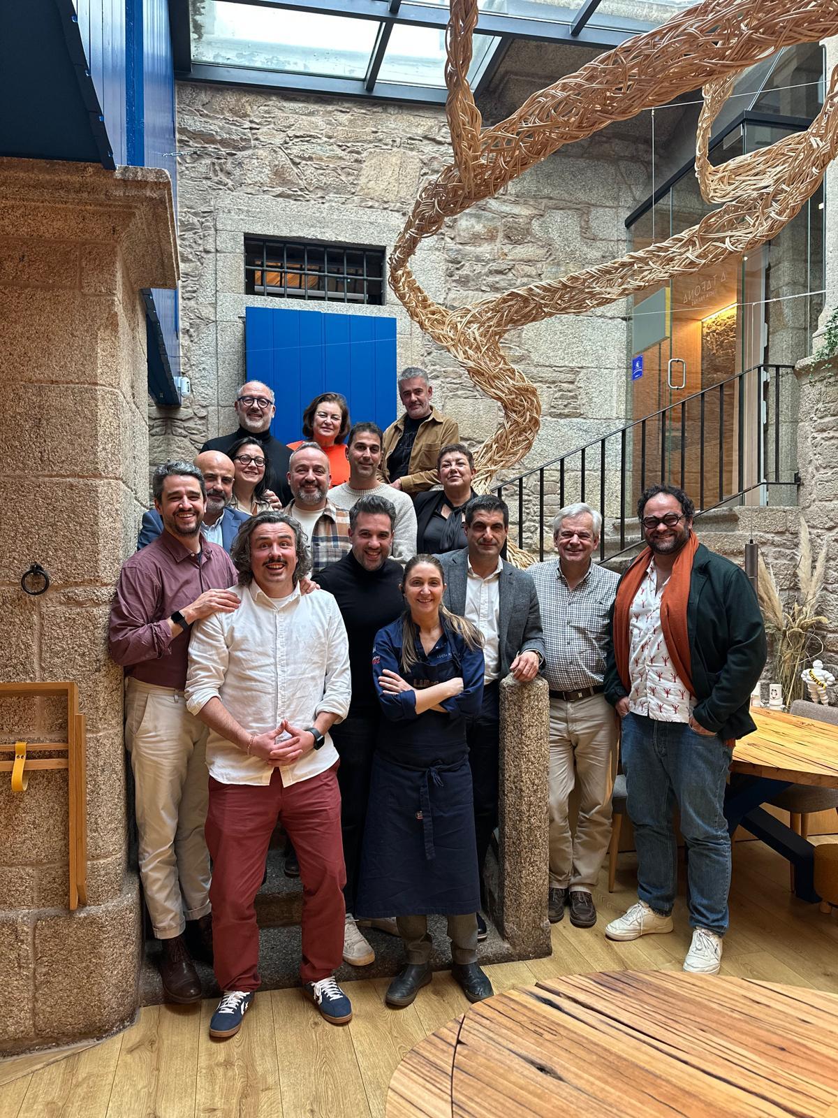 La reunión tuvo lugar en A Tafona, el restaurante de la chef Lucía Freitas, y sirvió como punto de encuentro entre instituciones, creadores y referentes gastronómicos del país vecino. En la cita participaron los cocineros André Cruz (Feitoria, Lisboa), Gil Fernandes (Fortaleza do Guincho, Cascais), Pedro Lemos (restaurante Pedro Lemos, Oporto), Alexandre Silva (LOCO y Fogo, Lisboa), Hugo Candeias (Ofício, Lisboa), Leopoldo Calhau (Taberna do Calhau, Bla Bla Glu Glu y Casa do Calhau), además del divulgador especializado en vino y gastronomía Marcos Lagoa.