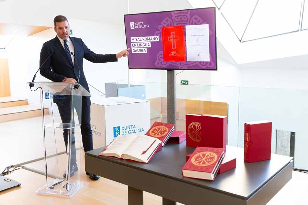 Esta iniciativa, destacou o representante do Goberno autonómico, “é froito unha vez máis da colaboración con institucións que nos permiten achegarnos a grandes grupos de poboación”. Con este misal, “favorecemos a dinamización da lingua no ámbito litúrxico, facilitando que os sacerdotes poidan oficiar as cerimonias relixiosas católicas en galego, achegándose así ás persoas galegofalantes e tamén prestixiando o idioma”.