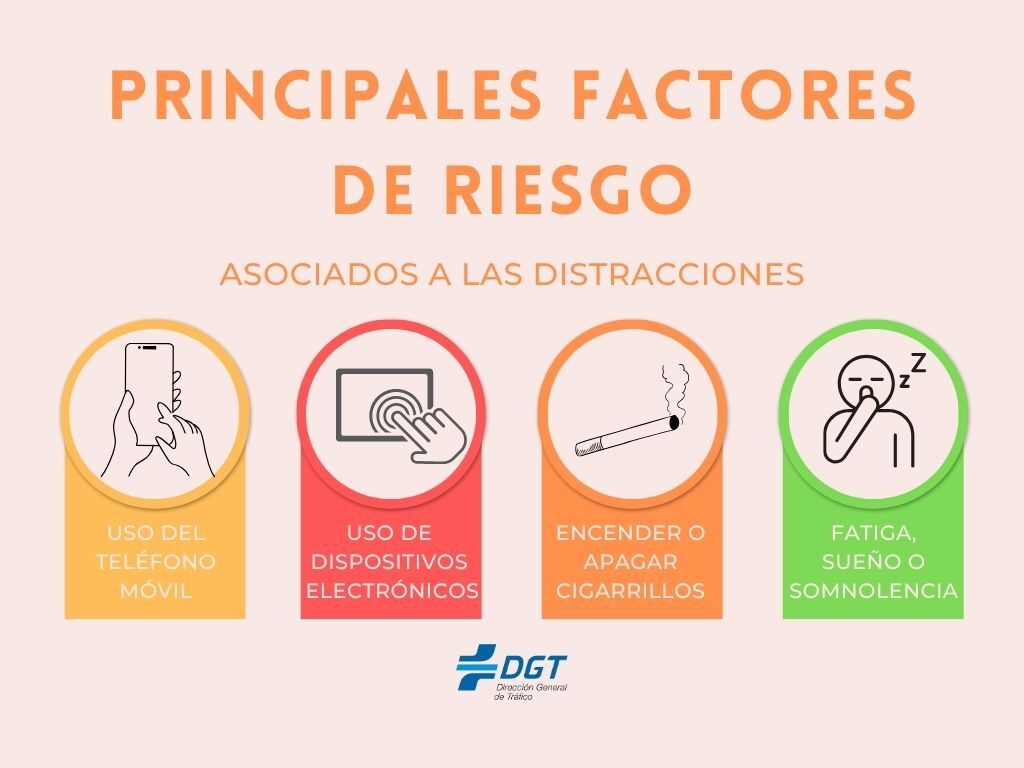 Las distracciones no solo abarcan el uso indebido de dispositivos electrónicos (móviles, auriculares), sino también otras circunstancias como la fatiga o el uso de dispositivos visuales.